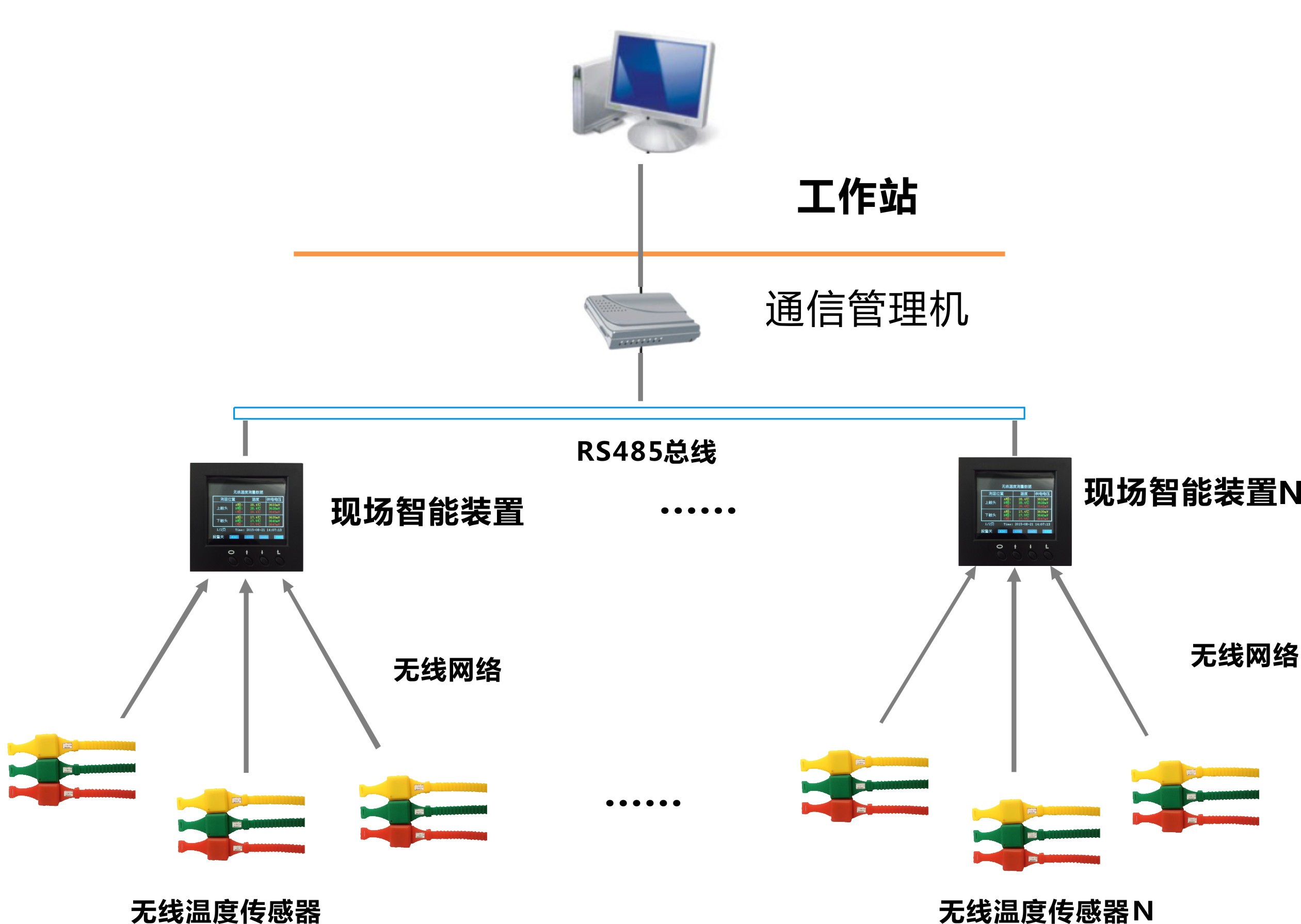 無線式溫度監(jiān)測系統(tǒng)具有極高的可靠性和安全性,且價(jià)格低廉,可直接安裝到每臺(tái)高壓開關(guān)、母線接頭、戶外刀閘或變壓器上。系統(tǒng)配備標(biāo)準(zhǔn)通訊接口,可聯(lián)網(wǎng)運(yùn)行。通過上位機(jī)軟件,可記錄高壓設(shè)備實(shí)時(shí)運(yùn)行溫度的數(shù)據(jù)。為高壓設(shè)備的維修提供累積數(shù)據(jù),實(shí)現(xiàn)了高壓設(shè)備熱故障預(yù)知維修。